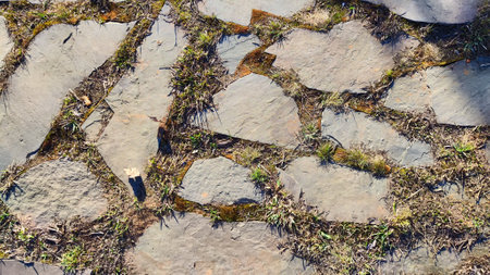 Explore a beautiful textured stone pathway adorned with greenery, perfect for enhancing outdoor spaces. Ideal for landscaping projects and nature themes.