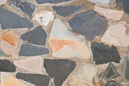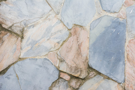 gray stone background with cracks piled from stone tile with cement lines close-up