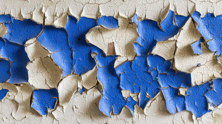 Textured surface with peeling white paint revealing a bright blue layer underneath.