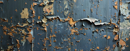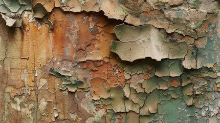 closeup of paint chips peeling off a wooden wall, created with generative ai