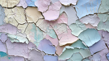 This image showcases a vibrant and colorful cracked paint texture, featuring pastel shades peeling off a surface. Perfect for creative projects.