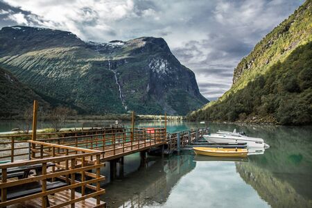 Tourism vacation and travel. Mountains landscape and fjord in Norway Scandinavia.
