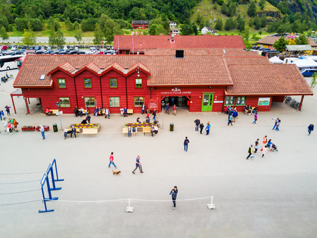 FLAM, NORWAY - JULY 26, 2017: Souvenir store at the centre of Flam village. Flam is a village at the Aurlandsfjord a branch of Sognefjord, Norway.