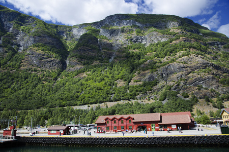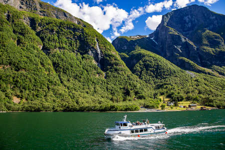 Aurlandsfjord fjord landscape with cruise ship, Norway Scandinavia.