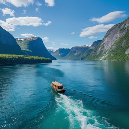Sailing the Majestic Sognefjord: A Norwegian Flag Charms the Scenic Voyage from Flam to Gudvangen