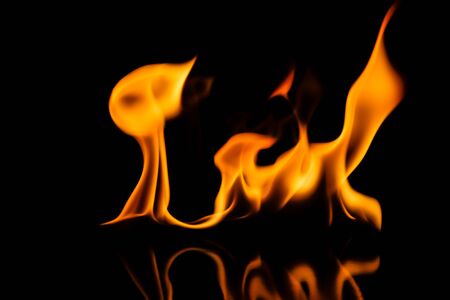 Fire flames on black background. Close up of fire flames isolated on black background.