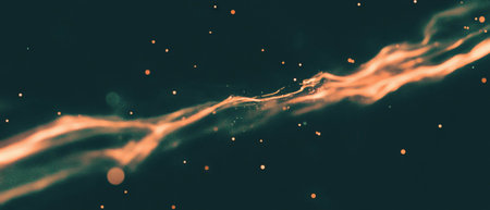 Wavy trail of sparks forming a glowing line on dark background, perfect for motion graphics and visual effects