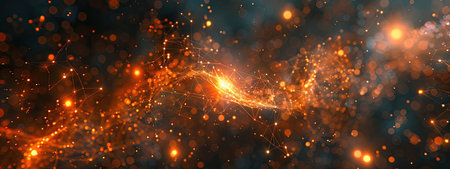 Abstract Digital Network Background with Glowing Orange Particles and Connecting Lines