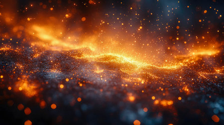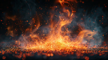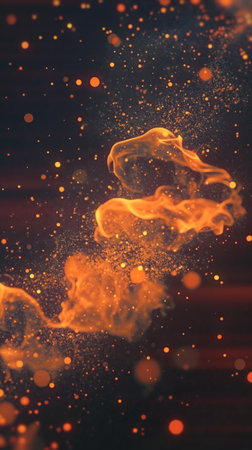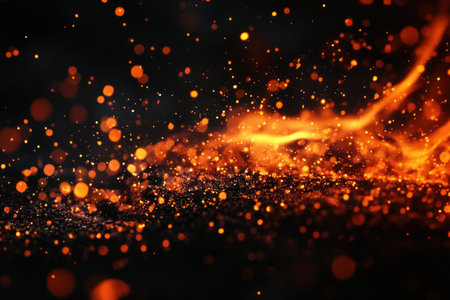mesmerizing display of glowing embers and sparkling particles creates captivating atmosphere, evoking warmth and energy in dynamic environment.