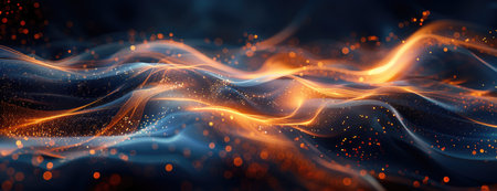 Abstract Orange Gold Glitter Wave Dark Background Design Art Shiny Light Motion Energy