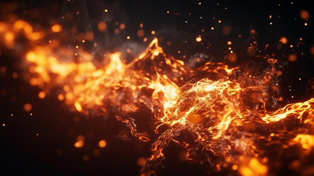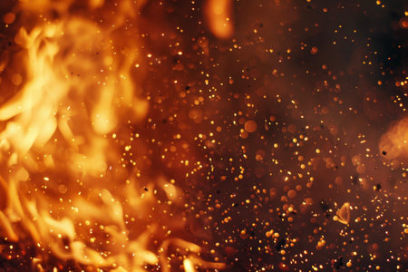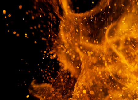 fire flame orange sparkles motion in dark wallpaper pattern background space for copy or your text here