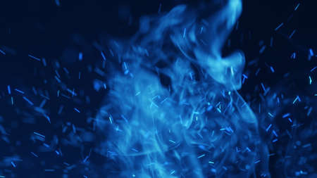 Blue sparks and flowing smoke. Magic Burst with fairy dust. Abstract background
