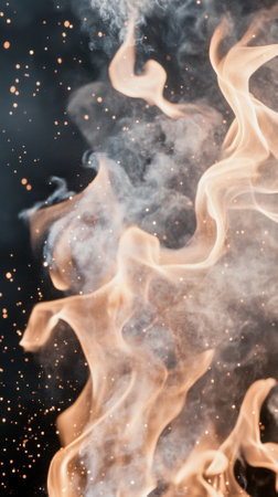 Captivating visual of vibrant flames and smoke intertwining against a dark background, perfect for creative projects needing energy and drama.