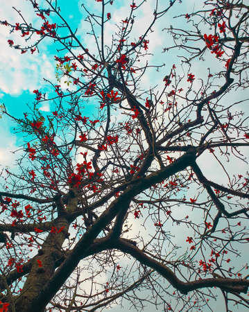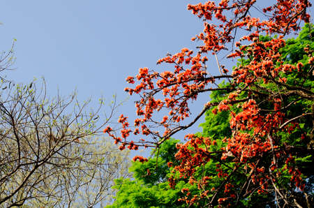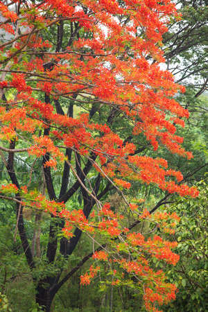 Branches of the flame tree with red flowers