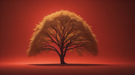 Silhouette of a tree on a red background. generative ai
