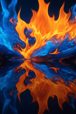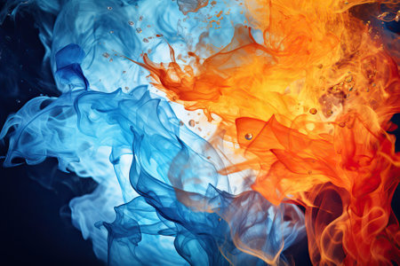 AI Generated. Fiery Orange Flames Meeting with Blue Water Splashes