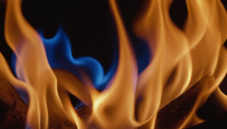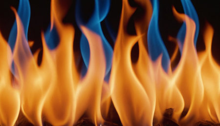 Close-up of Vibrant Blue and Orange Flames Dancing on a Dark Background with Copy Space