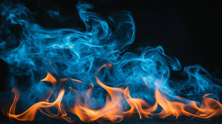 Abstract Blue Fire Flames On Black Background, Vibrant Colors, Copy Space for your design
