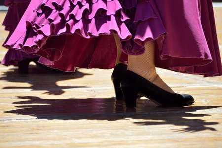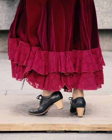Seville, Spain - May 10, 2018: Dancer in traditional red dress dances flamenco, Seville