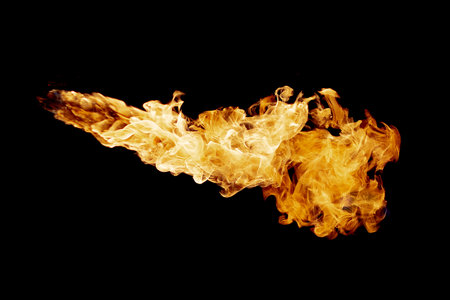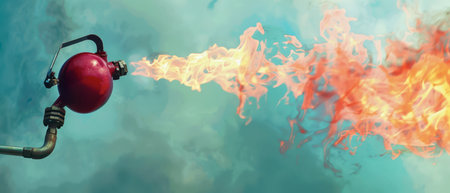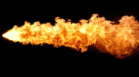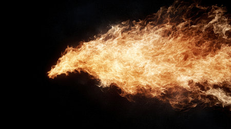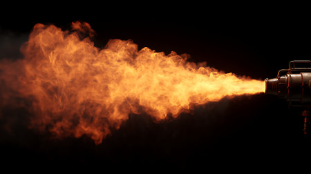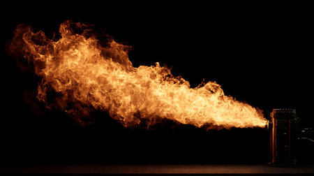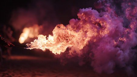 A stunning image of a fire breathing torch emitting bright flames and sparks against a dark background, ideal for dynamic and action-packed visuals.