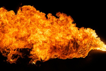 Fire flame stream on dark black background