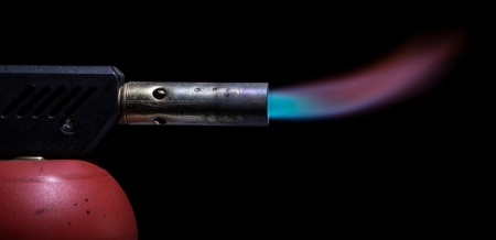 Blowtorch with blue flame on black background