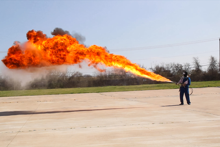 Flamethrower in action. a Flamethrower operational test.