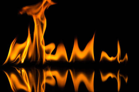 Fire flames on black background. Close up of fire flames isolated on black background.