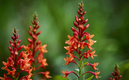Beautiful orange flowers on a green background. Close-up.