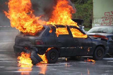 Car on fire sudden engulfing