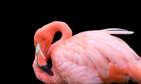 Flamingo isolated on black background with clipping path. Close up.