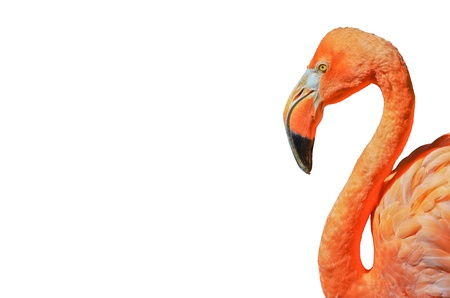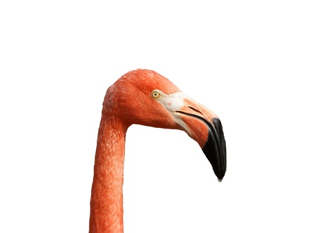 Pink flamingo isolated on white background. Close up of flamingo