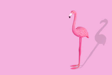 Pink flamingo figure with shadow on pastel pink background. Minimal summer concept. Copy space