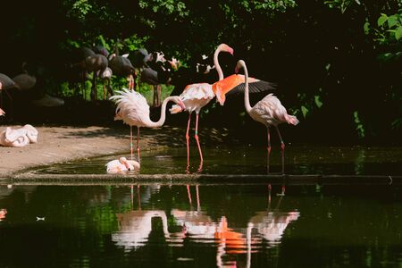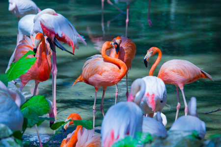 group of beautiful colored flamingos. High quality photo