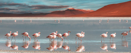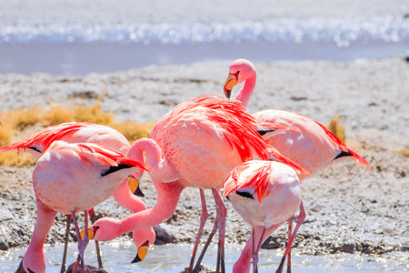 Laguna Hedionda flamingos, Bolivia. Andean wildlife. Bolivian lagoon