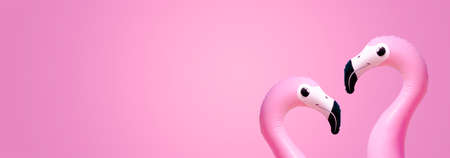 Summer horizontal banner. Pink banner with two flamingo lovers with space for text
