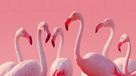 African wild birds. Flock of Flamingos Against a Pink Background
