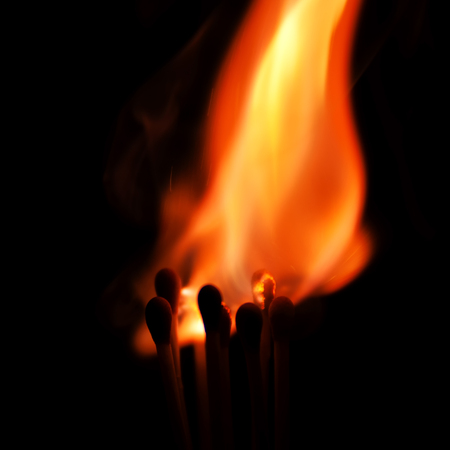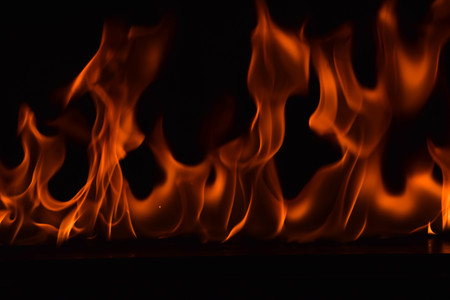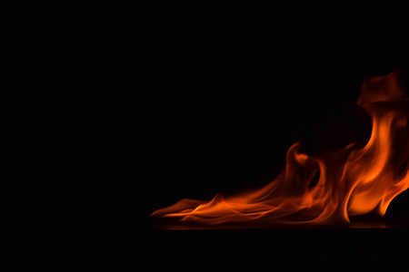 Fire flames on black background. Closeup of fire flames isolated on black background.