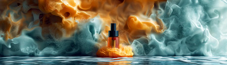 skincare bottle and body care. Ad banner for natural beauty products on foggy paint splash background. Natural cosmetic