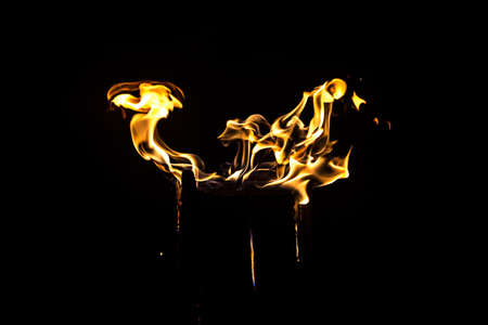 Fire flames on black background. Close up of fire flames isolated on black background.