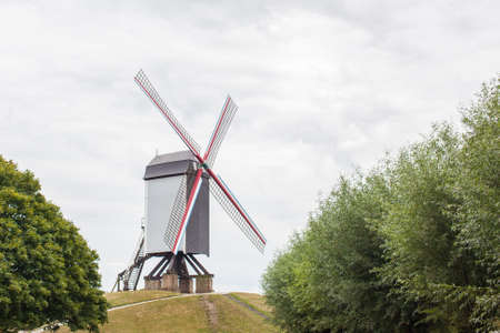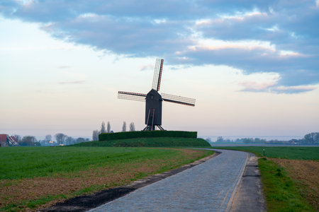 This beautiful Mountain mill is located in Wannegem-Lede Belgium, with the rise of the sun and clouds.