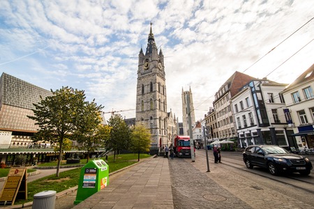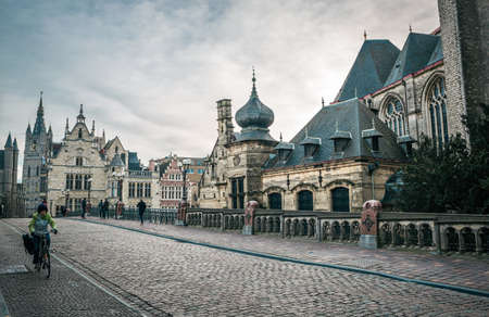 GHENT, BELGIUM - November, 2017: Architecture of Ghent city center. Ghent is medieval city and point of tourist destination in Belgium.