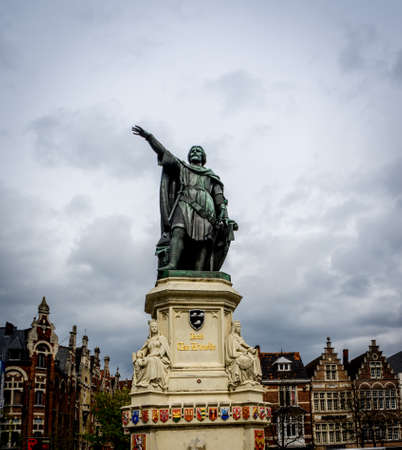 Statue of Jacob van Artevelde in Ghent, Belgium, Europe on a cloudy day