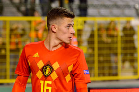 BRUSSELS - NOV 15, 2018: Thorgan Hazard 16 close up portrait. Belgium - Iceland. UEFA Nations League.