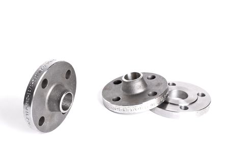 Nozzle of pressure vessel is carbon steel, included Flange and Nozzle Neck, Assembly in factory, background.