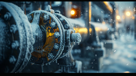 Frost covered Industrial Pipes in a Cold Environment Showcasing the Impact of Winter on Machinery and Infrastructure. Generative AI