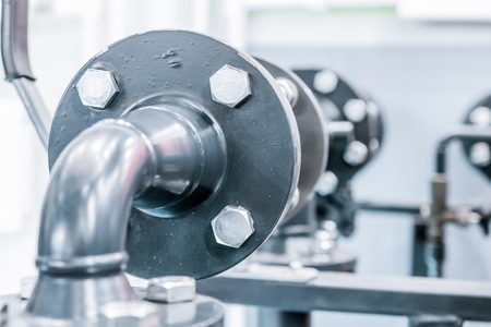 Industrial pipe connection detail, factory production plant
