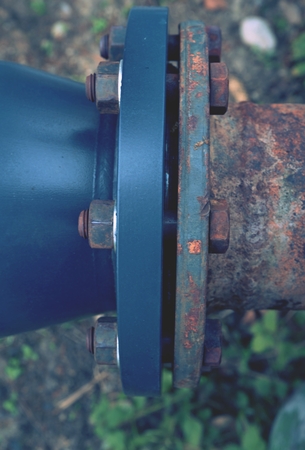 Pipe flange with bolts connecting between pipe and water tank