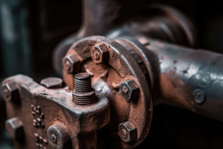 Captivating Macro View: Unveiling the Intricate Details and Rusted Metal Texture of an Essential Industrial Valve, Emphasizing its Vital Role in Machinery and Manufacturing
