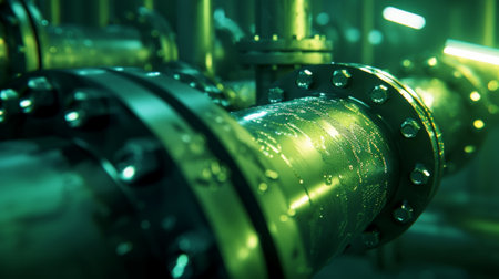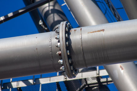 A closeup of pipelines in oil and gas engineering and industrial construction